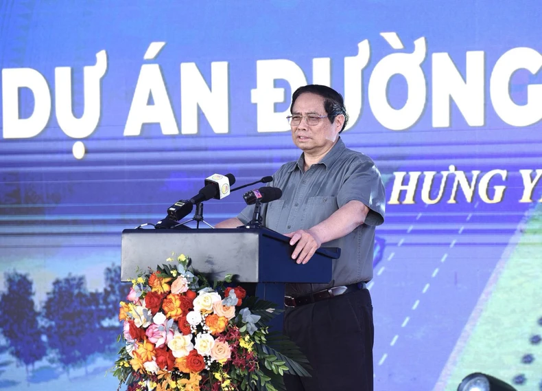 Phát biểu ý kiến tại buổi lễ, Thủ tướng Phạm Minh Chính bày tỏ vui mừng được tham dự lễ khởi công; nêu rõ, Hưng Yên có nhiều huyện thị gần Hà Nội, nhưng điều quan trọng phải có hệ thống giao thông kết nối; do đó tỉnh cần nỗ lực kết nối đường cao tốc Hà Nội-Hải Phòng, cao tốc Cầu Giẽ-Ninh Bình và tuyến đường qua Văn Giang.