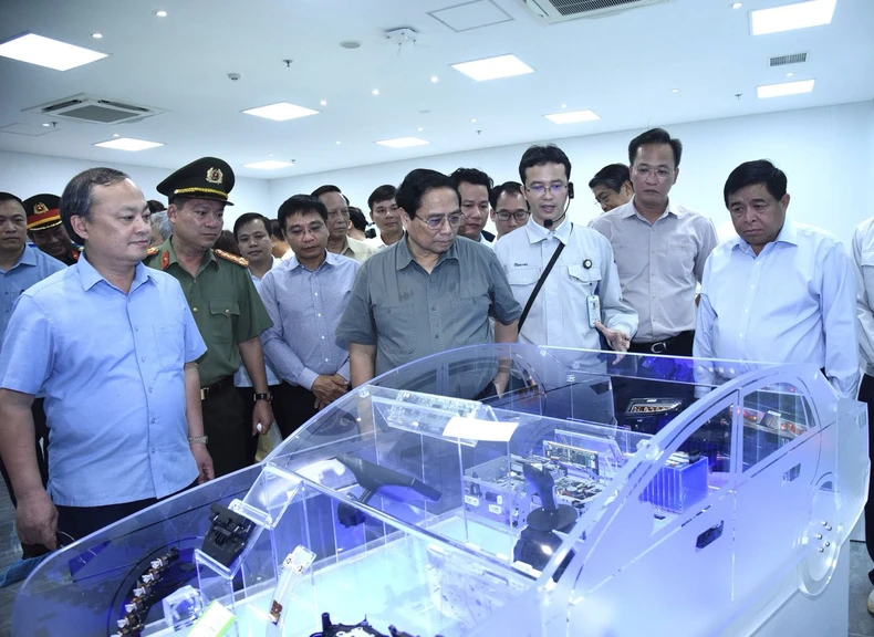 Thủ tướng Phạm Minh Chính nghe giới thiệu về các sản phẩm của Công ty Mektec Manufacturing Việt Nam.