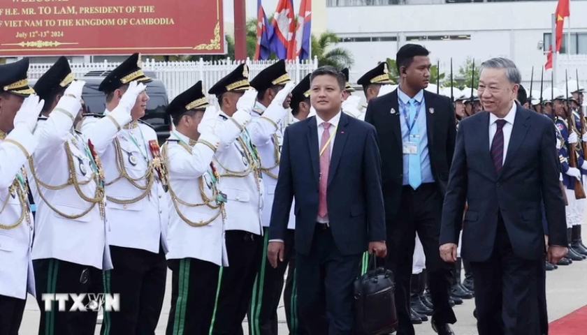 Đây là chuyến thăm đầu tiên của Chủ tịch nước Tô Lâm đến Vương quốc Campuchia sau khi được Quốc hội tín nhiệm bầu giữ cương vị mới.
