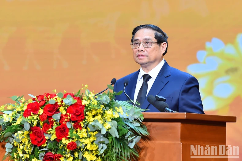 Thay mặt lãnh đạo Đảng, Nhà nước, đồng chí Phạm Minh Chính, Ủy viên Bộ Chính trị, Thủ tướng Chính phủ dự và phát biểu ý kiến tại Hội nghị.