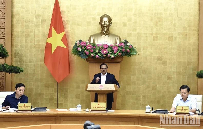 Thủ tướng Phạm Minh Chính phát biểu ý kiến chỉ đạo phiên họp. (Ảnh: TRẦN HẢI).