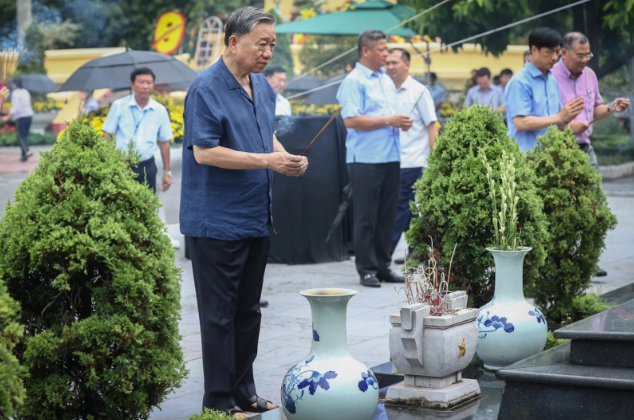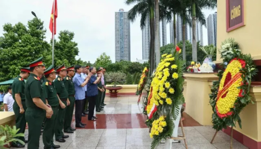 Chủ tịch nước Tô Lâm cùng đoàn kiểm tra dâng hương tại Đài Tổ quốc ghi công.