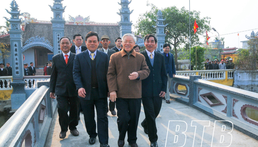 Tổng Bí thư Nguyễn Phú Trọng trong chuyến thăm và làm việc tại xã Thụy Văn (Thái Thụy) năm 2014.