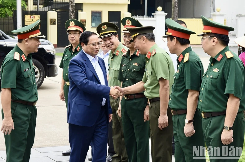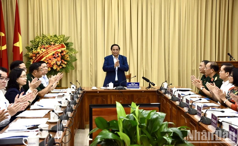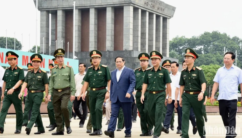 Thủ tướng Phạm Minh Chính tới kiểm tra, làm việc với Ban Quản lý Lăng Chủ tịch Hồ Chí Minh. (Ảnh: Trần Hải).