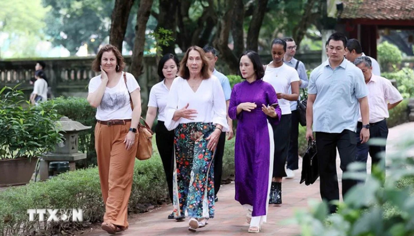 Trong khuôn khổ chuyến thăm chính thức Việt Nam, ngày 24/8, tại Hà Nội, Chủ tịch Thượng viện Australia Sue Lines và Đoàn đã đến thăm Di tích Quốc gia đặc biệt Văn Miếu-Quốc Tử Giám.