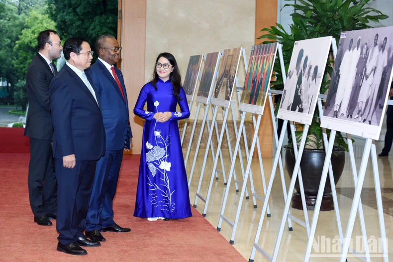 Thủ tướng Phạm Minh Chính giới thiệu với Tổng thống Cộng hòa Guinea-Bissau Umaro Sissoco Embalo những bức ảnh về quan hệ hai nước. (Ảnh: Trần Hải).