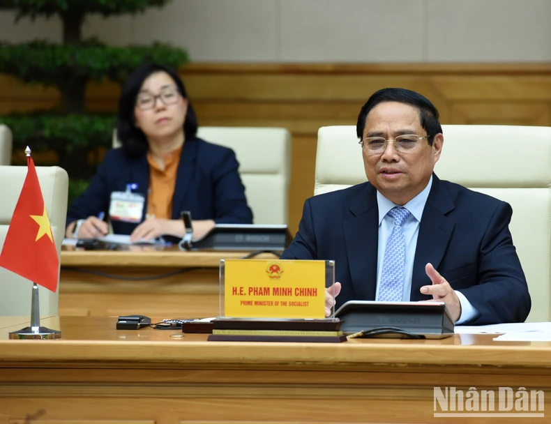 Thủ tướng Phạm Minh Chính phát biểu ý kiến tại cuộc hội kiến. (Ảnh: Trần Hải).