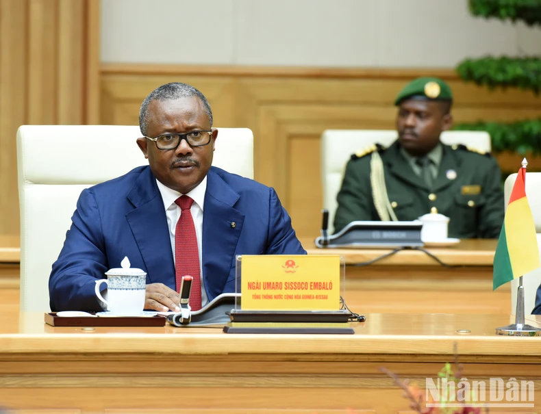 Cảm ơn sự đón tiếp nồng hậu, thân tình mà Lãnh đạo và nhân dân Việt Nam anh em đã dành cho đoàn, Tổng thống Guinea-Bissau bày tỏ ngưỡng mộ những thành tựu phát triển vượt bậc của Việt Nam, đánh giá cao vai trò và sự lãnh đạo sáng suốt của Đảng, Nhà nước và Chính phủ Việt Nam.