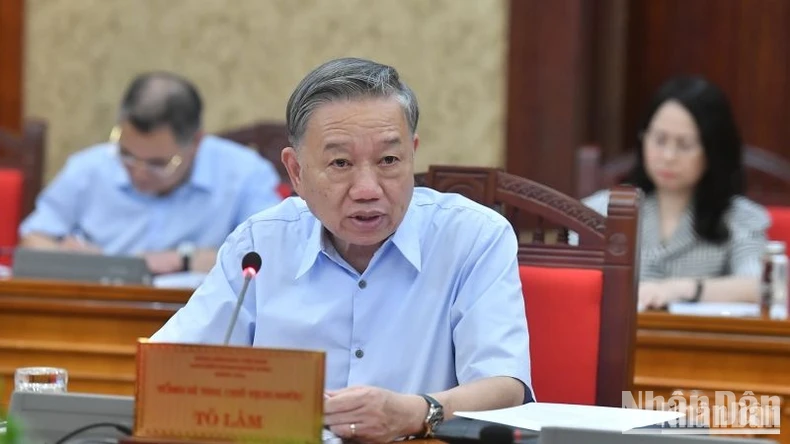Tổng Bí thư, Chủ tịch nước Tô Lâm phát biểu chỉ đạo cuộc họp. (Ảnh: Đăng Khoa).