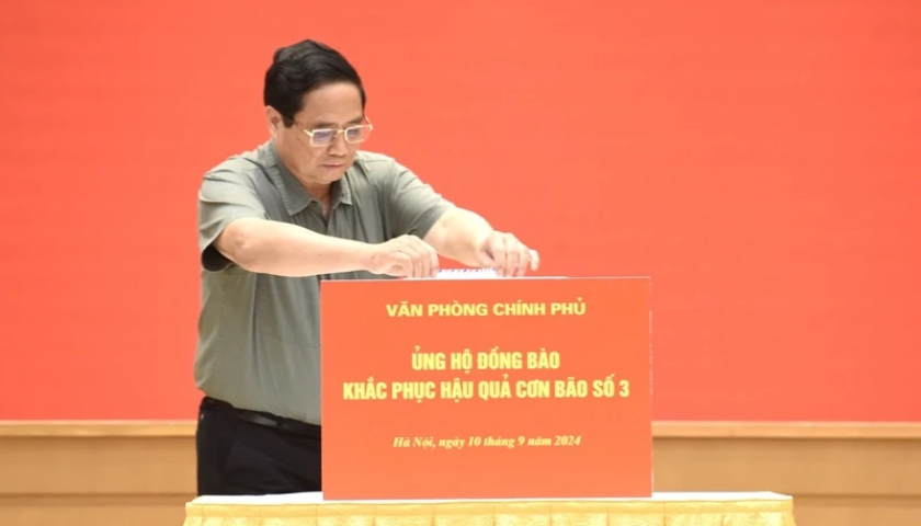 Thủ tướng Phạm Minh Chính ủng hộ đồng bào khắc phục hậu quả cơn bão số 3 (Ảnh: Trần Hải).