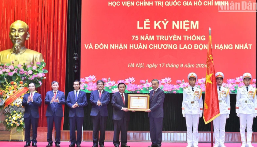 Phát biểu ý kiến tại buổi lễ, thay mặt lãnh đạo Đảng, Nhà nước, Tổng Bí thư, Chủ tịch nước Tô Lâm chúc mừng, biểu dương những thành tựu to lớn mà các thế hệ cán bộ, viên chức, học viên của Học viện Chính trị quốc gia Hồ Chí Minh đã đạt được trong 75 năm qua.
