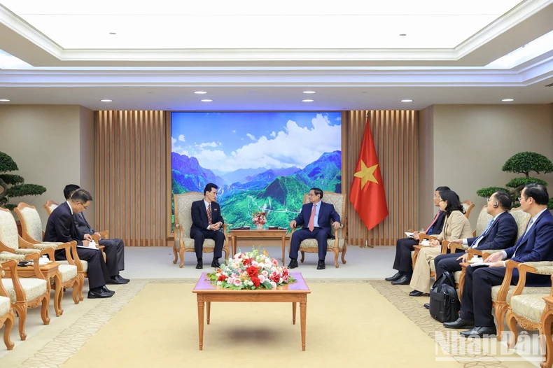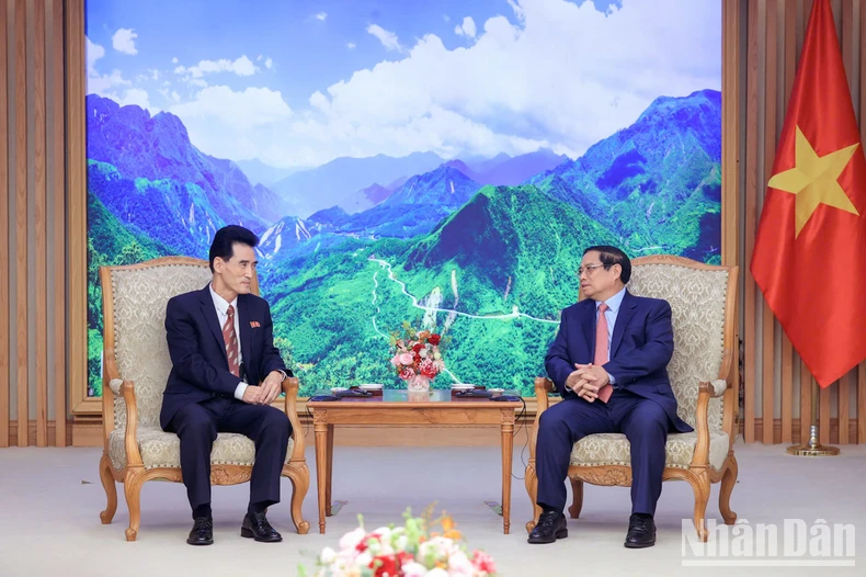 Thủ tướng Phạm Minh Chính tiếp Đại sứ Cộng hòa Dân chủ nhân dân Triều Tiên tại Việt Nam Ri Sung Guk. (Ảnh: TRẦN HẢI).