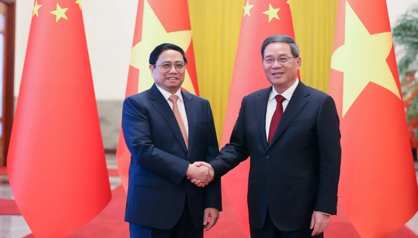 Thủ tướng Chính phủ Phạm Minh Chính và Thủ tướng Lý Cường trong chuyến thăm Trung Quốc hồi tháng 6/2023. (Ảnh: VGP).