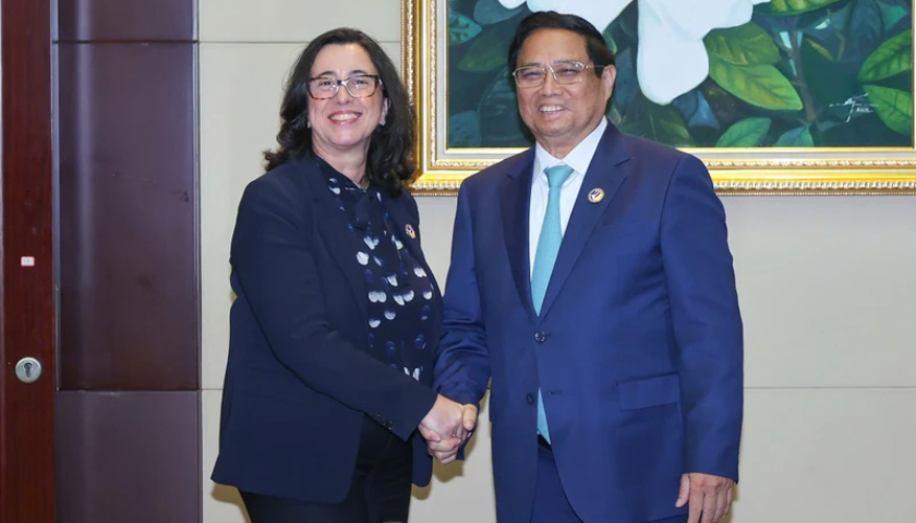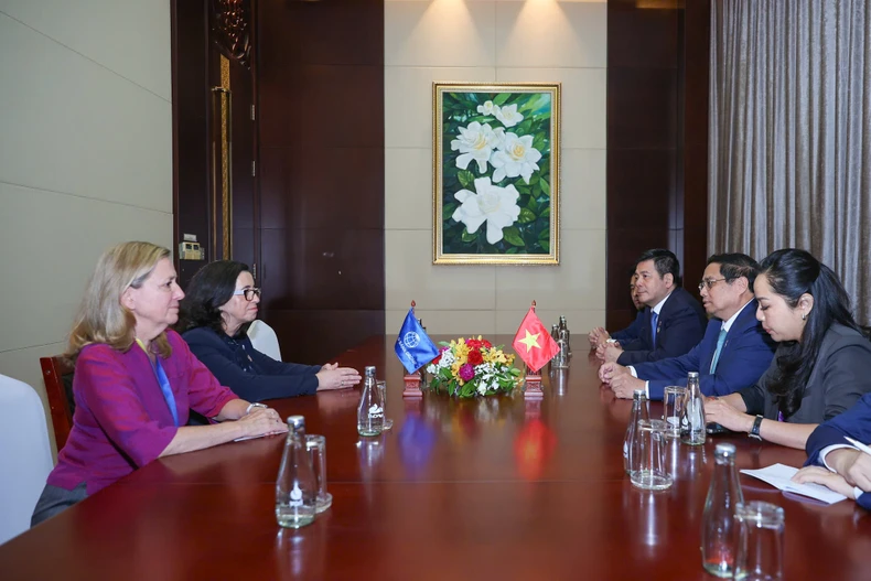 Thủ tướng Phạm Minh Chính và bà Manuela Ferro, Phó Chủ tịch Ngân hàng Thế giới (WB) phụ trách khu vực Đông Á và Thái Bình Dương. (Ảnh: Nhật Bắc/VGP).