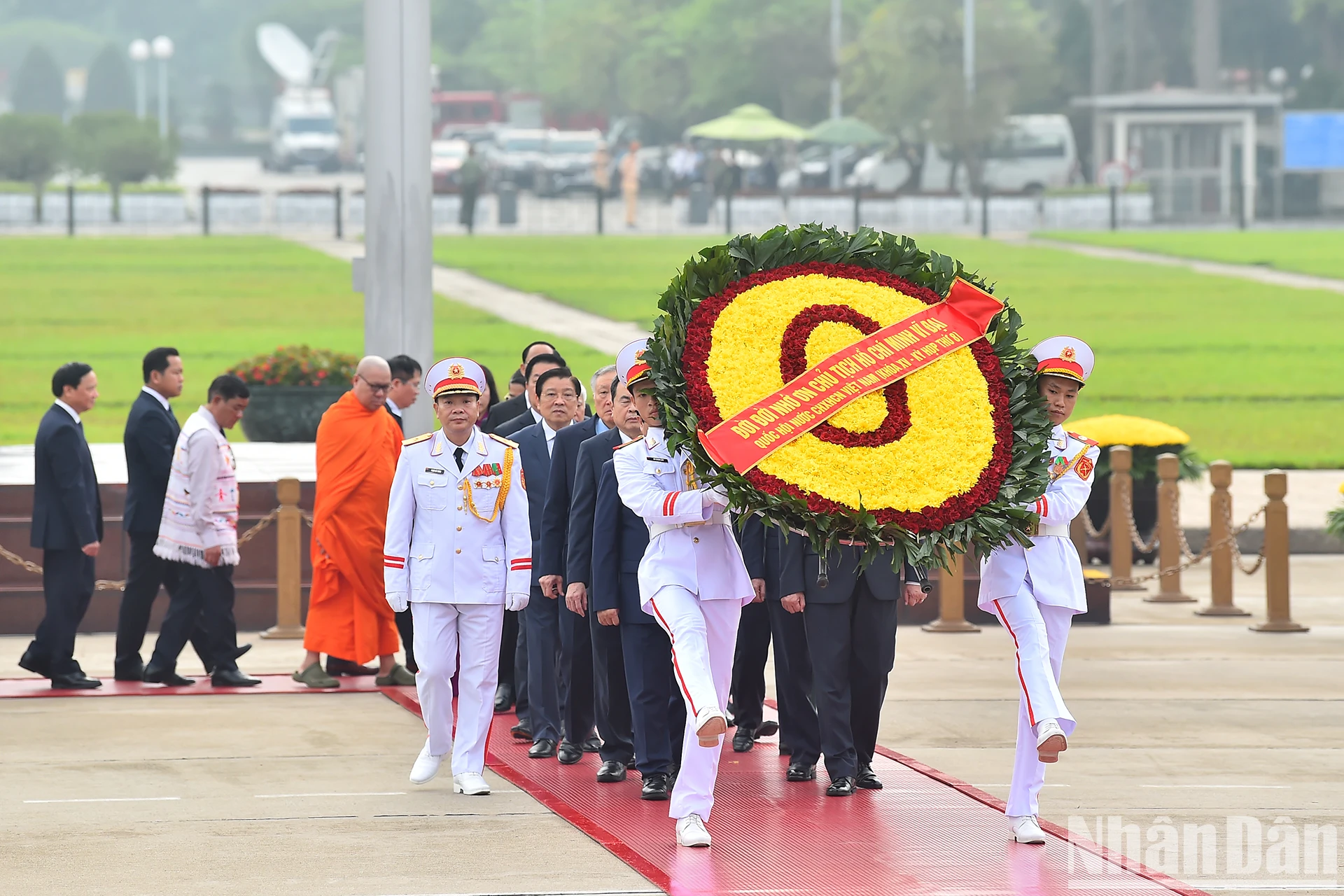 Quang cảnh lễ dâng hoa, vào Lăng viếng Chủ tịch Hồ Chí Minh của Đoàn đại biểu Quốc hội tại Quảng trường Ba Đình lịch sử.