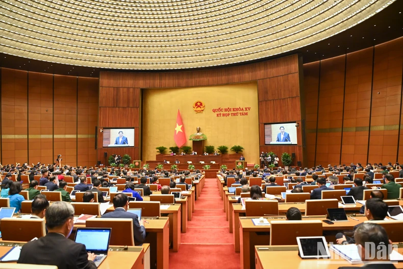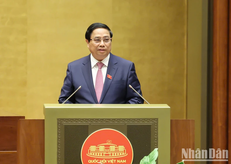 Thủ tướng Phạm Minh Chính báo cáo Quốc hội thực hiện kế hoạch phát triển kinh tế xã hội 2024 và kế hoạch năm 2025. (Ảnh: DUY LINH).