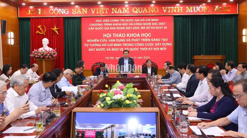 Quang cảnh hội thảo khoa học “Nghiên cứu, vận dụng và phát triển sáng tạo tư tưởng Hồ Chí Minh trong công cuộc xây dựng đất nước và bảo vệ Tổ quốc thời kỳ đổi mới (giai đoạn từ 1986 đến nay, định hướng đến năm 2030 và tầm nhìn đến năm 2045)”.