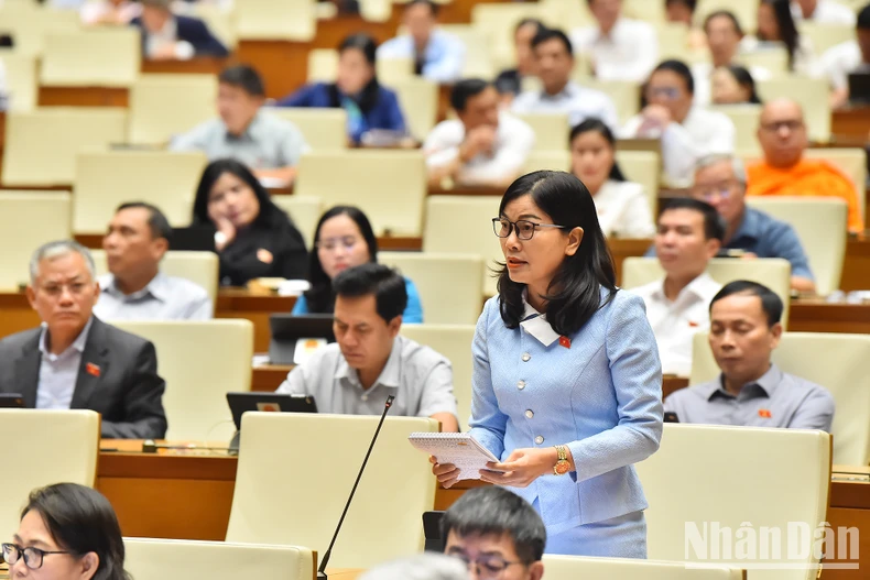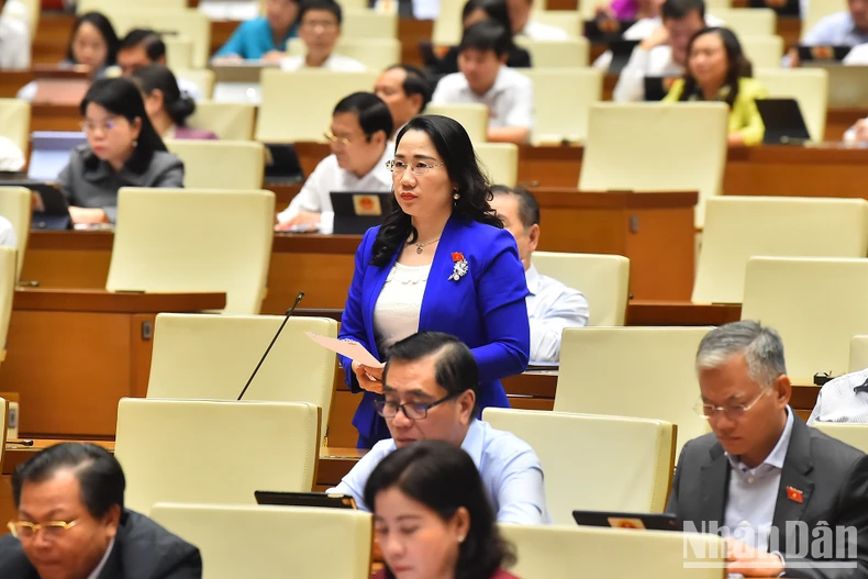 Đại biểu Nguyễn Thị Xuân phát biểu tại phiên chất vấn. (Ảnh: THỦY NGUYÊN).