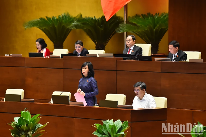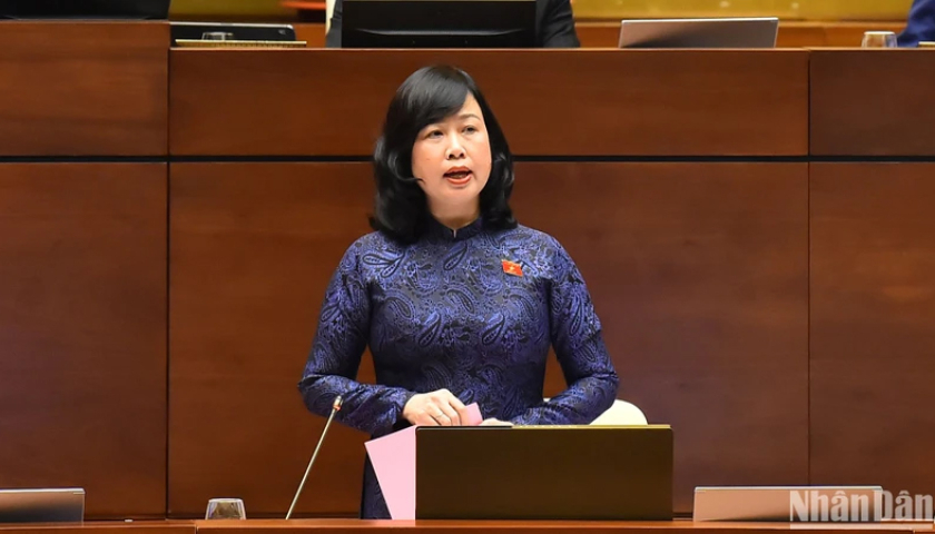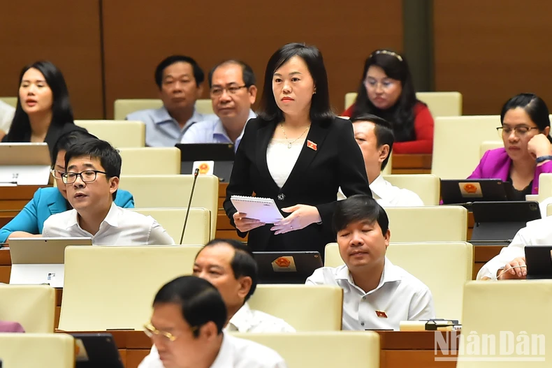 Đại biểu Nguyễn Thị Thủy chất vấn chiều 11/11. (Ảnh: THỦY NGUYÊN).
