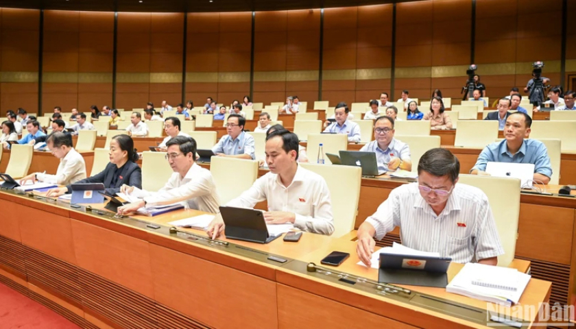 Các đại biểu Quốc hội biểu quyết thông qua Nghị quyết về phương án phân bổ ngân sách Trung ương năm 2025. (Ảnh: DUY LINH).