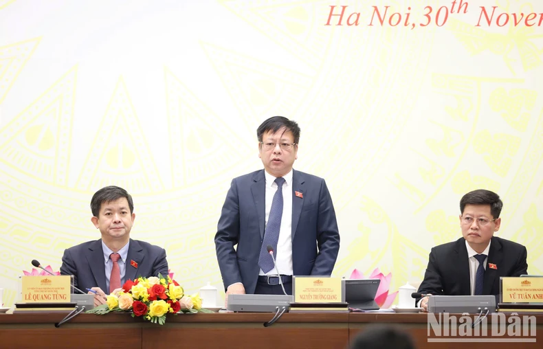 Chiều 30/11, Ủy viên Trung ương Đảng, Ủy viên Ủy ban Thường vụ Quốc hội, Tổng Thư ký Quốc hội, Chủ nhiệm Văn phòng Quốc hội Lê Quang Tùng chủ trì họp báo công bố kết quả Kỳ họp thứ 8, Quốc hội khóa XV.