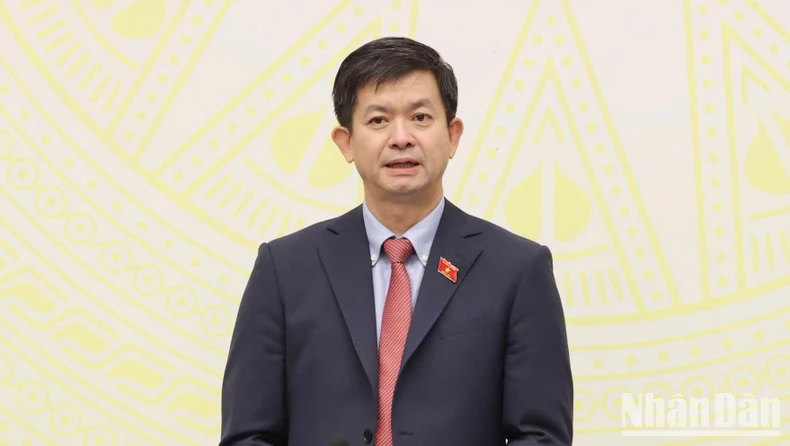 Phó Tổng Thư ký Quốc hội, Phó Chủ nhiệm Ủy ban Pháp luật của Quốc hội Nguyễn Trường Giang phát biểu tại họp báo. (Ảnh: DUY LINH).