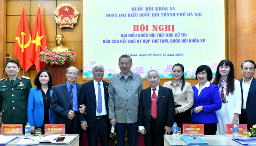 Tổng Bí thư Tô Lâm và các đại biểu dự Hội nghị tiếp xúc cử tri thành phố Hà Nội. (Ảnh: ĐĂNG KHOA).