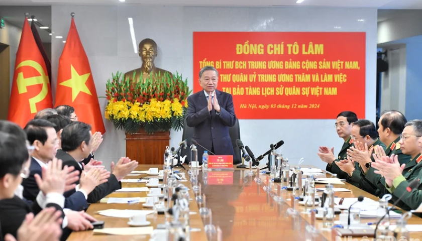 Phát biểu tại buổi làm việc, Tổng Bí thư Tô Lâm khẳng định, Bảo tàng Lịch sử Quân sự Việt Nam là công trình đặc biệt quan trọng của Quân đội nhân dân Việt Nam và của Quốc gia. Tổng Bí thư biểu dương Bộ Quốc phòng và các đơn vị đã chỉ đạo xây dựng công trình bảo đảm tiến độ và chất lượng; bày tỏ vui mừng khi được thấy rất đông người dân đến tham quan bảo tàng trong không khí rất phấn khởi, háo hức.
