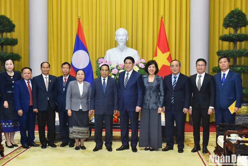Đồng chí Bounthong Chitmany gửi lời thăm hỏi thân thiết của Tổng Bí thư, Chủ tịch nước Lào Thongloun Sisoulith tới Chủ tịch nước Lương Cường.