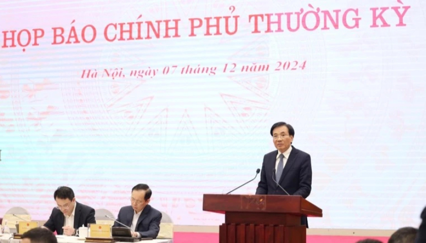 Bộ trưởng, Chủ nhiệm Văn phòng Chính phủ Trần Văn Sơn chủ trì họp báo Chính phủ thường kỳ. (Ảnh: VGP).