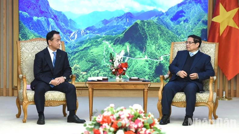 Thủ tướng Phạm Minh Chính tiếp ông Muraoka Tsugumasa, Thống đốc tỉnh Yamaguchi (Nhật Bản). (Ảnh: TRẦN HẢI).