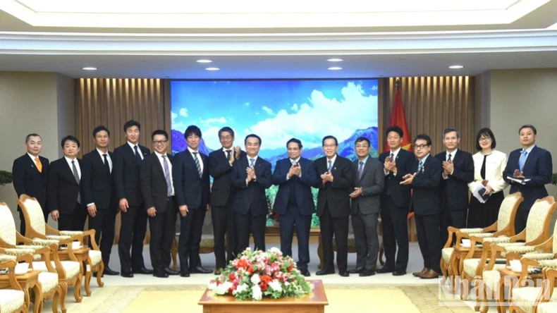 Thủ tướng Phạm Minh Chính và Đoàn đại biểu tỉnh Yamaguchi. (Ảnh: TRẦN HẢI).
