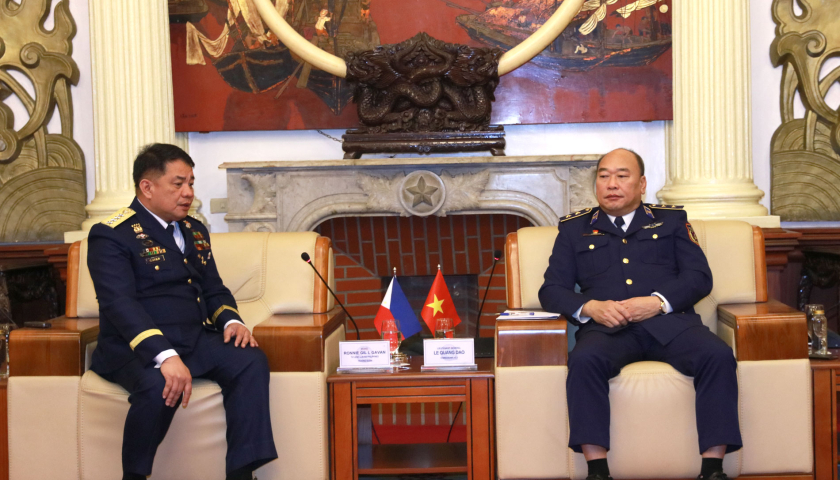 Trung tướng Lê Quang Đạo - Tư lệnh Cảnh sát biển Việt Nam và Đô đốc Ronnie Gil L Gavan - Tư lệnh Lực lượng Bảo vệ bờ biển Philippines đồng chủ trì buổi làm việc.