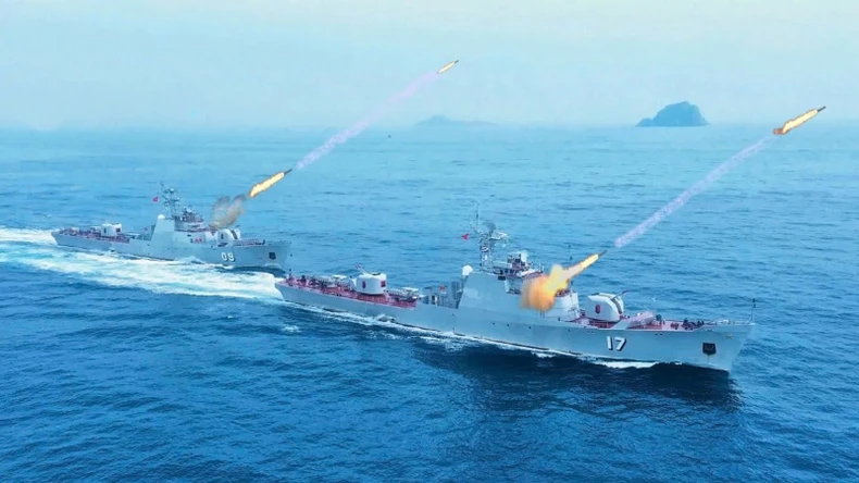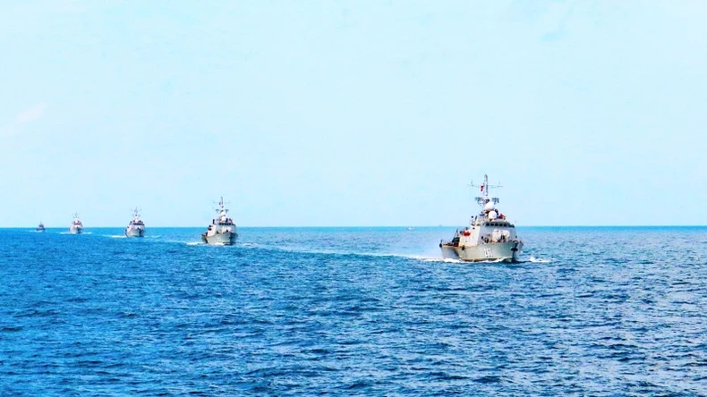 Các biên đội tàu của Hải quân Việt Nam huấn luyện thực chiến trên biển.