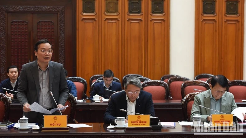Lãnh đạo Bộ Nội vụ báo cáo Thủ tướng Chính phủ tại Phiên họp. (Ảnh: TRẦN HẢI).
