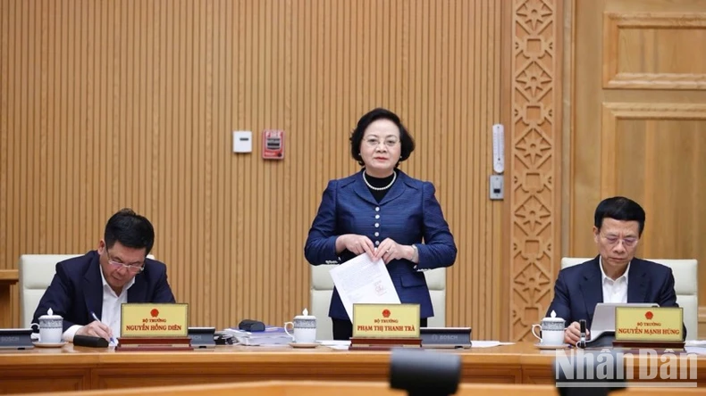 Bộ trưởng Nội vụ Phạm Thị Thanh Trà phát biểu ý kiến tại phiên họp. (Ảnh: TRẦN HẢI).