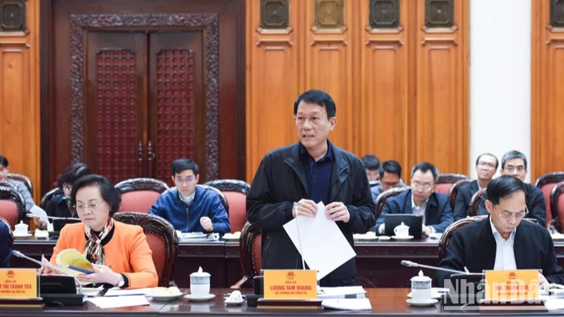 Bộ trưởng Công an Lương Tam Quang phát biểu ý kiến tại Phiên họp (Ảnh: TRẦN HẢI).