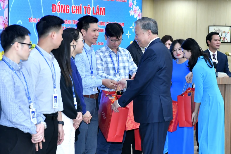 *Chiều cùng ngày, nhân dịp chuẩn bị đón Xuân Ất Tỵ 2025, Tổng Bí thư Tô Lâm đã thăm hỏi, chúc Tết, tặng quà các đồng chí nguyên Bí thư Tỉnh ủy đã nghỉ hưu, các trí thức, chức sắc tôn giáo, Mẹ Việt Nam Anh hùng, Anh hùng Lực lượng vũ trang nhân dân, Anh hùng Lao động, thương binh, bệnh binh, học sinh đạt Huy chương Vàng quốc tế năm 2024.
