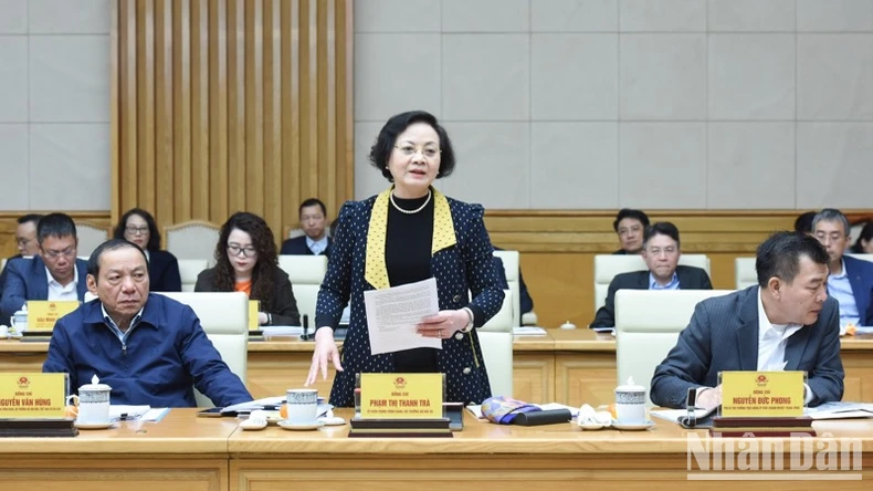Bộ trưởng Nội vụ Phạm Thị Thanh Trà phát biểu ý kiến tại Hội nghị. (Ảnh: TRẦN HẢI).