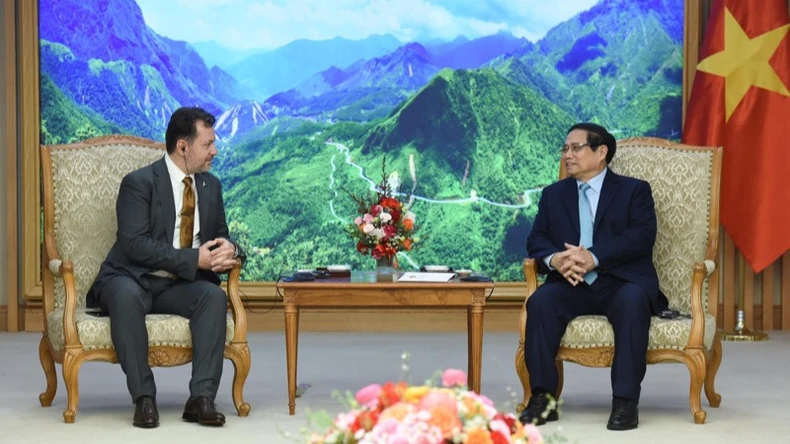 Thủ tướng Phạm Minh Chính và Đại sứ Pakistan tại Việt Nam Kohdayar Marri. (Ảnh: TRẦN HẢI).