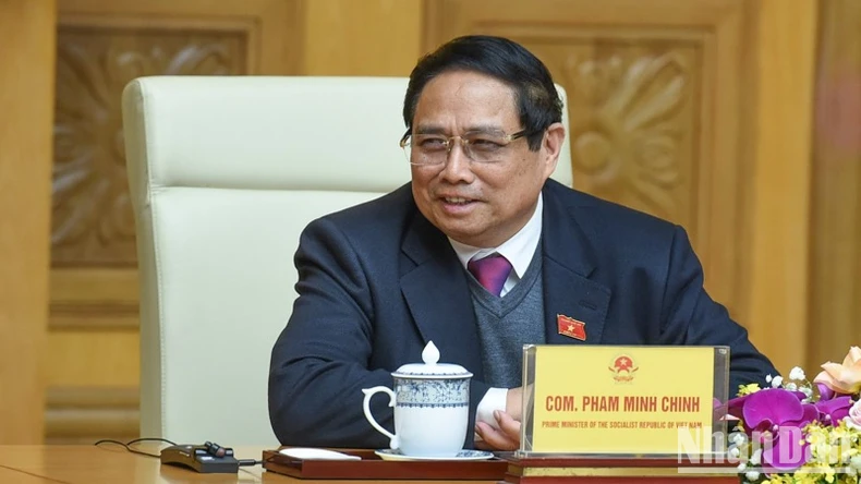 Thủ tướng Phạm Minh Chính phát biểu ý kiến tại buổi tiếp. (Ảnh: TRẦN HẢI).