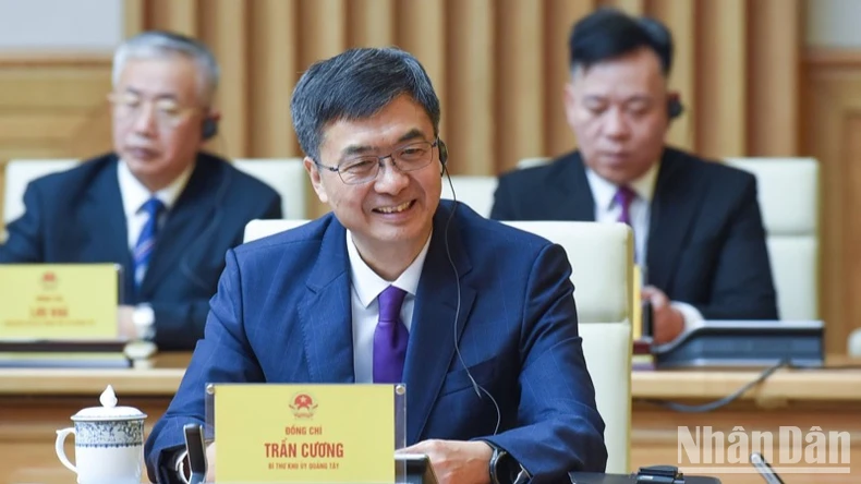 Nhất trí với các ý kiến chỉ đạo của Thủ tướng Phạm Minh Chính, Bí thư Quảng Tây Trần Cương khẳng định tiềm năng hợp tác giữa Quảng Tây và các địa phương Việt Nam còn rất lớn; mong muốn hai bên đẩy mạnh kết nối giao thông, nhất là kết nối đường sắt; đẩy nhanh xây dựng “cửa khẩu thông minh” để nâng cao hiệu suất thông quan hàng hóa; thúc đẩy hợp tác kinh tế qua biên giới, trước mắt là thí điểm xây dựng Khu hợp tác ngành nghề qua biên giới giữa Quảng Tây với Quảng Ninh.