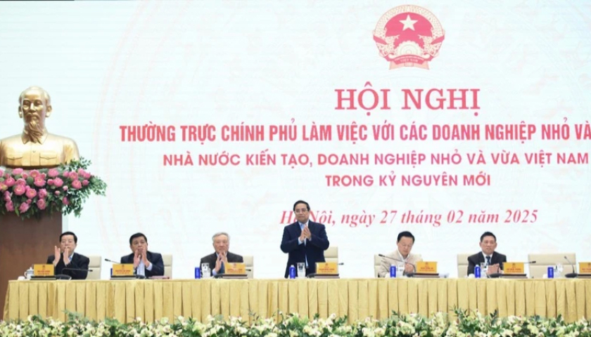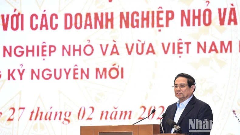 Thủ tướng Phạm Minh Chính chủ trì Hội nghị Thường trực Chính phủ làm việc với các doanh nghiệp nhỏ và vừa Việt Nam (Ảnh: TRẦN HẢI).