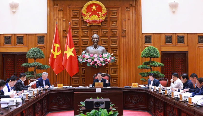 Thủ tướng Chính phủ chủ trì cuộc họp của Ban Thường vụ Đảng ủy Chính phủ, tiếp tục cho ý kiến về Đề án sắp xếp, tổ chức lại đơn vị hành chính các cấp và xây dựng chính quyền địa phương 2 cấp - Ảnh: VGP/Nhật Bắc.