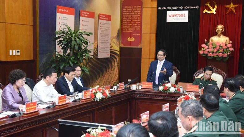 Phát biểu ý kiến chỉ đạo tại buổi làm việc, ghi nhận và biểu dương những kết quả đạt được, Thủ tướng Phạm Minh Chính đánh giá cao những bước phát triển đột phá của công nghiệp quốc phòng thời gian qua; nhấn mạnh, những sản phẩm công nghiệp quốc phòng do Quân đội ta tự nghiên cứu và phát triển, đặc biệt là các sản phẩm chiến lược đã, đang và sẽ góp phần tạo nền móng để xây dựng nền công nghiệp quốc phòng Việt Nam chủ động, tự lực, tự cường, lưỡng dụng, hiện đại; phát huy nội lực là yếu tố quyết định; gắn kết chặt chẽ và trở thành mũi nhọn của công nghiệp quốc gia.