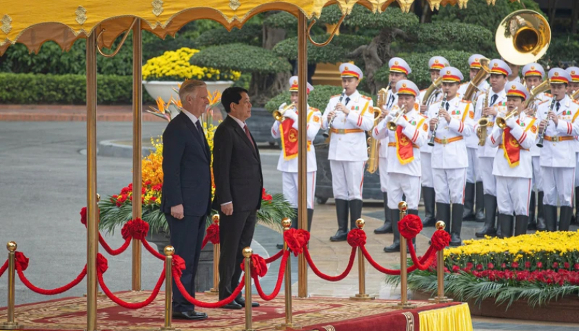 Chủ tịch nước Lương Cường và Nhà Vua Philippe duyệt Đội Danh dự Quân đội nhân dân Việt Nam.