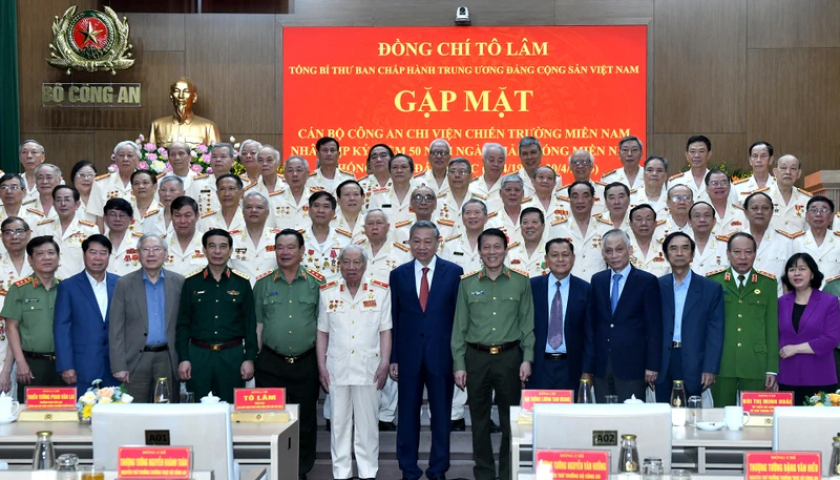 Phát biểu tại buổi gặp mặt, Tổng Bí thư Tô Lâm bày tỏ tri ân sâu sắc những cống hiến, đóng góp của các đồng chí cán bộ công an chi viện chiến trường miền nam, của lực lượng An ninh miền nam và nhân dân miền nam anh hùng cũng như của quân và dân cả nước; trân trọng, đánh giá cao ý kiến phát biểu tâm huyết, trách nhiệm của đại biểu tại buổi gặp mặt.