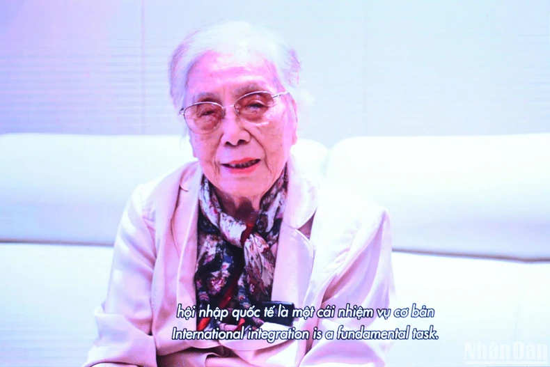 Thông điệp ghi hình của nguyên Phó Chủ tịch nước Nguyễn Thị Bình tại hội thảo.