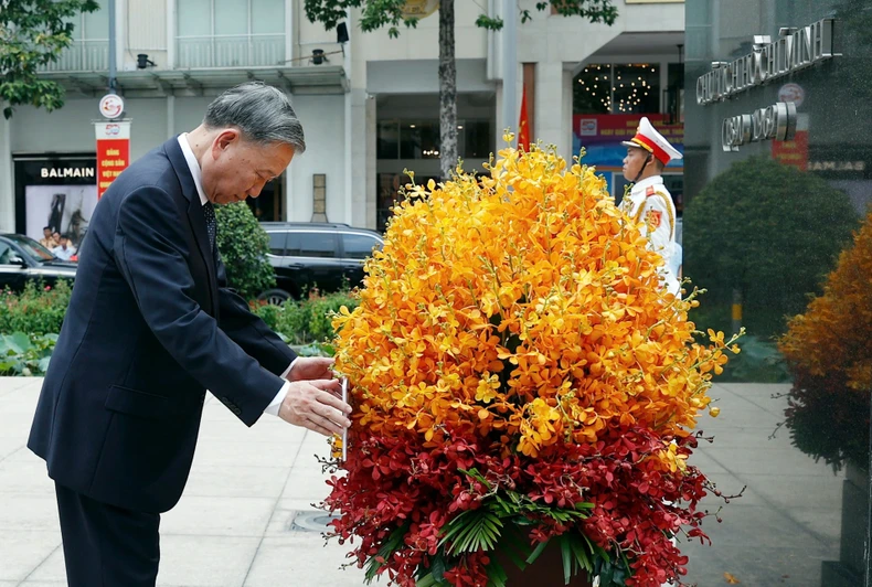 Tổng Bí thư Tô Lâm dâng hoa tưởng nhớ Chủ tịch Hồ Chí Minh. (Ảnh: Duy Linh).