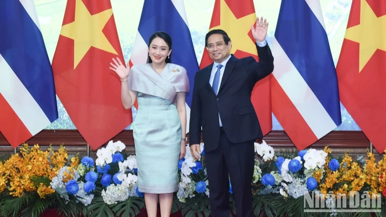 Thủ tướng Phạm Minh Chính và Thủ tướng Thái Lan Paetongtarn Shinawatra. (Ảnh: TRẦN HẢI).